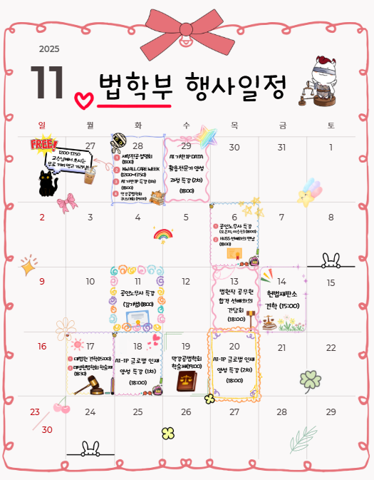 다양한 정보와 지식을 얻어갈 수 있는 법학부의 행사에 많은 참여 부탁드립니다.