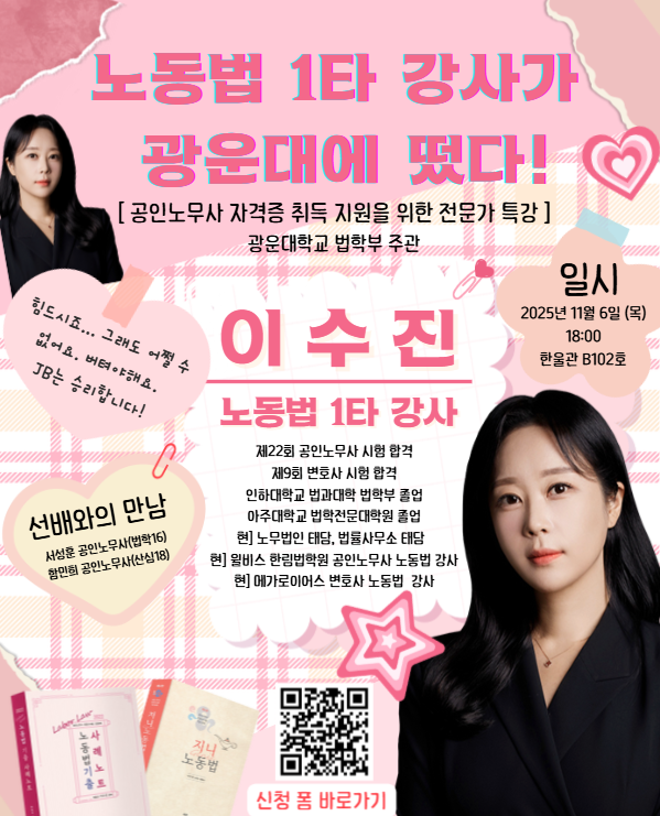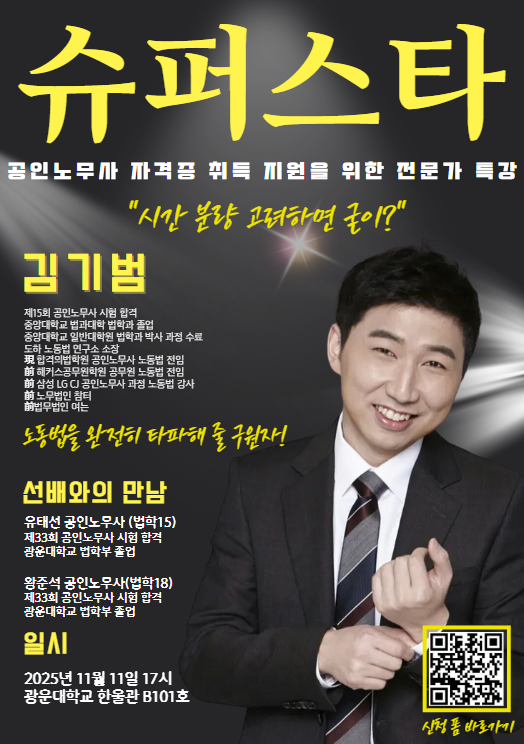 공인노무사 시험에 관심 있는 학생들의 많은 참여 바랍니다.