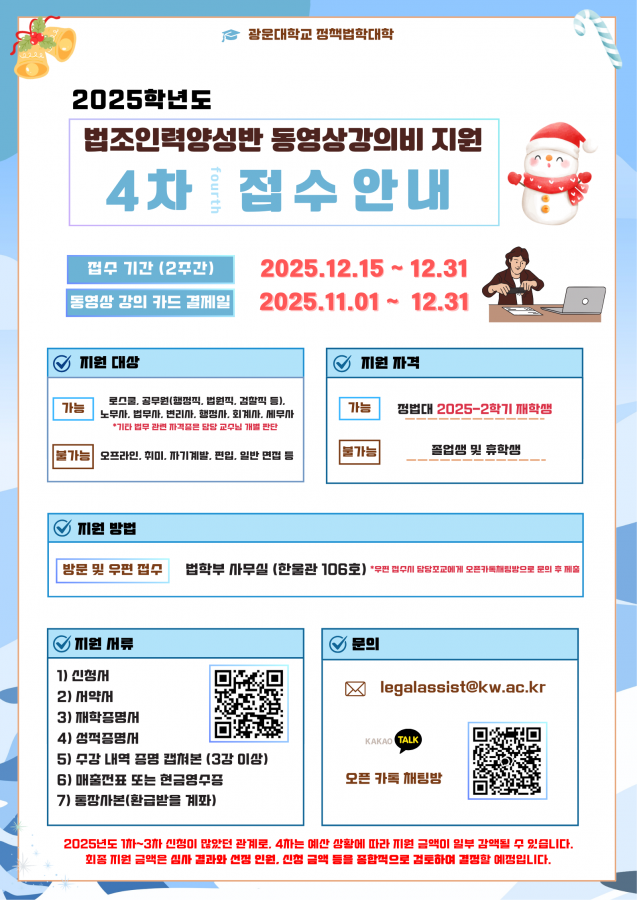 [접수 중] 2025학년도 정책법학대학 동영상 강의비 지원 (4차)